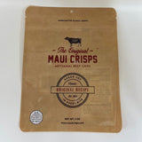 Our jerky is made with the tastiest ingredients on the island of Maui. Crafted in small batches, we strive to produce only the highest quality pipikaula, Hawaiian beef jerky. A staple of the 19th century paniolo (cowboys), the name pipikaula translates as “beef rope” and is as popular today as it was back on the open range. Maui Crisps are a mix of old and new traditional family recipes merged with lighter, crunchier chip unlike any other jerky. It’s an original! Ultra thin slices of high quality beef are marinated in the tastiest family sauces and dried to crispy perfection on the slopes of Haleakala. Enjoy!