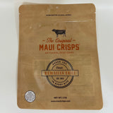 Our jerky is made with the tastiest ingredients on the island of Maui. Crafted in small batches, we strive to produce only the highest quality pipikaula, Hawaiian beef jerky. A staple of the 19th century paniolo (cowboys), the name pipikaula translates as “beef rope” and is as popular today as it was back on the open range. Maui Crisps are a mix of old and new traditional family recipes merged with lighter, crunchier chip unlike any other jerk. It’s an original! Ultra thin slices of high quality beef are marinated in the tastiest family sauces and dried to crispy perfection on the slopes of Haleakala. Enjoy!