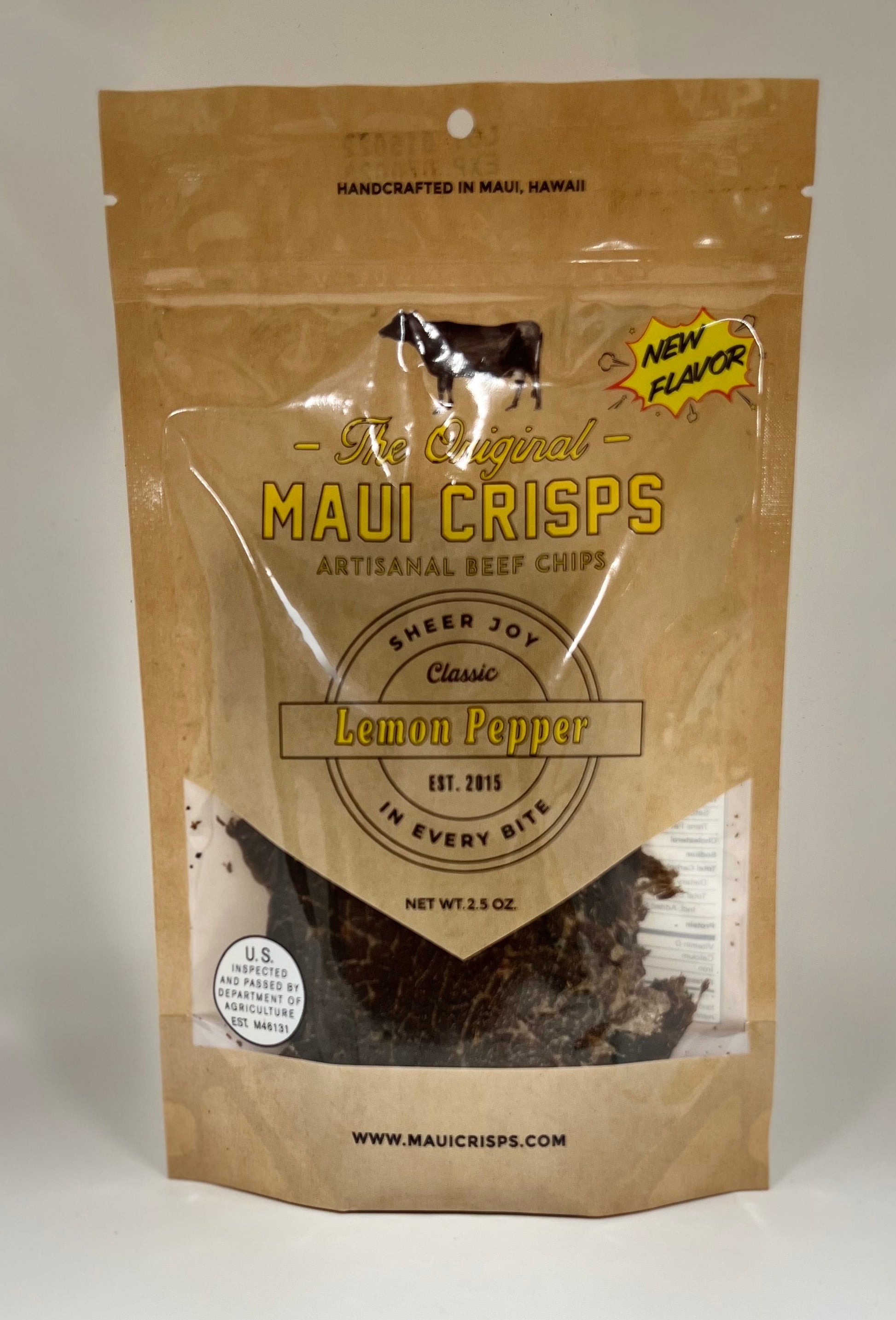 Our jerky is made with the tastiest ingredients on the island of Maui, Hawai‘i. Crafted in small batches, we strive to produce only the highest quality pipikaula, Hawaiian beef jerky. A staple of the 19th century paniolo (cowboys), the name pipikaula translates as “beef rope” and is as popular today as it was back on the open range. Maui Crisps are a mix of old and new: traditional family recipes merged with lighter, crunchier chips unlike any other jerky—it’s an original! Ultra thin slices of high quality beef are marinated in the tastiest family sauces and dried to crispy perfection on the slopes of Haleakala. Enjoy!